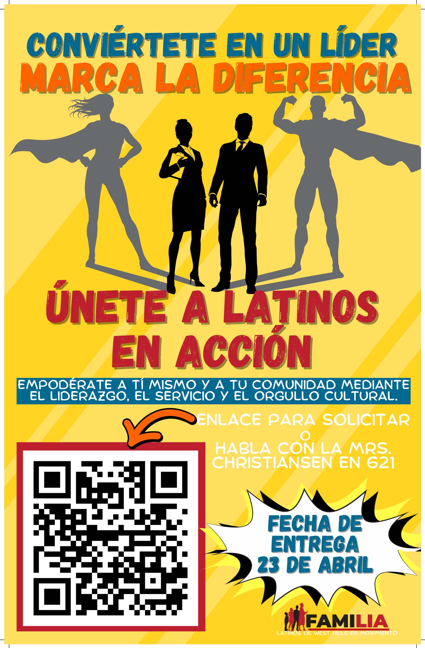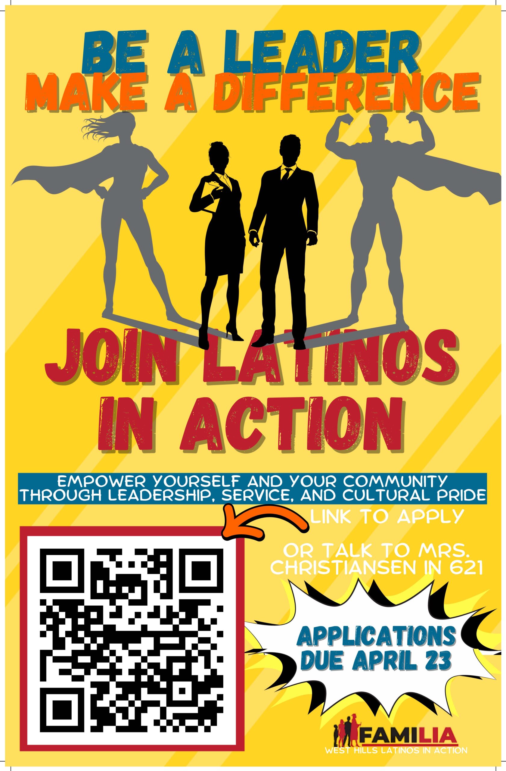 Scan the QR code in the flyer to apply OR talk to Mrs. Christiansen in room 621